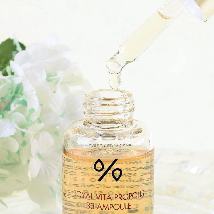 Ампула с прополисом для улучшения тона Dr.Ceuracle Royal Vita Propolis 33 Ampoule активно восстанавливает кожу, улучшает ее текстуру, возвращает гладкость и эластичность, выравнивает тон. Средство осветляет нежелательную пигментацию и постакне и препятствует появлению пигментных пятен. Содержит экстракты прополиса и маточного молочка, ниацинамид и 3-О этил аскорбиновую кислоту.