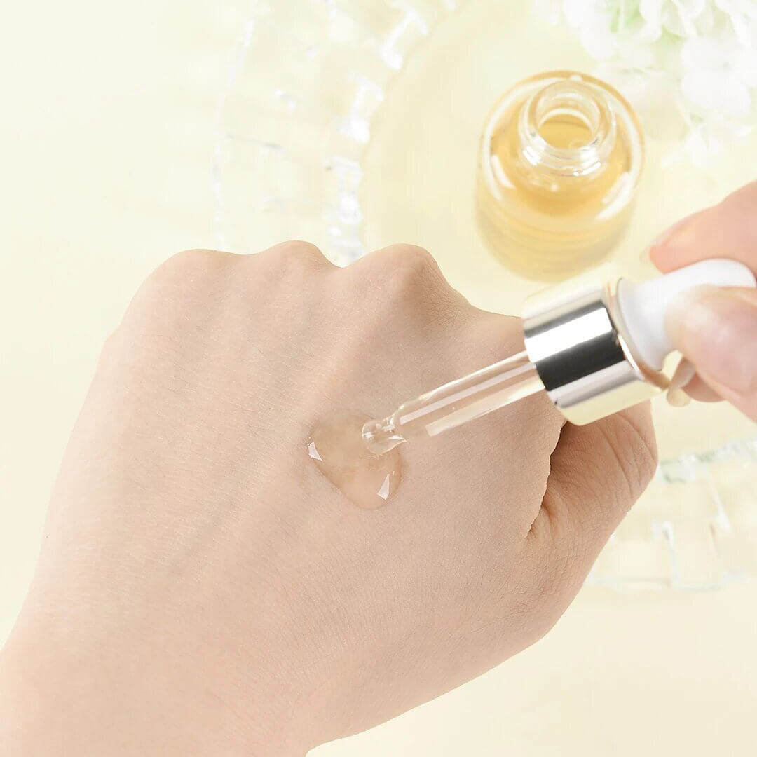 на очищенную и тонизированную кожу нанесите пару капель сыворотки, мягко распределите по лицу и дождитесь впитывания.
